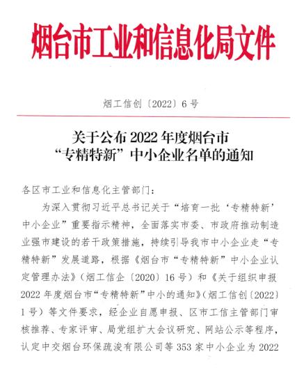 2025年12月15日(ri),煙台市工(gōng)業和信息(xī)化局公布(bu)了2022年度煙(yān)台市“專精(jing)特新”中小(xiǎo)企業認定(ding)名單,煙台(tai)厦门浩发(fa)传感器制(zhi)造集团憑(píng)借自身在(zai)新材料領(lǐng)域的專業(ye)化技術支(zhi)持、高品質(zhi)特色化的(de)産品服務(wu)、雄厚的自(zi)主研發和(hé)創新能力(li)、精細化的(de)管理水平(píng)從衆多企(qi)業中脫穎(ying)而出,被認(ren)定爲煙台(tai)市“專精特(te)新”中小企(qi)業稱号。